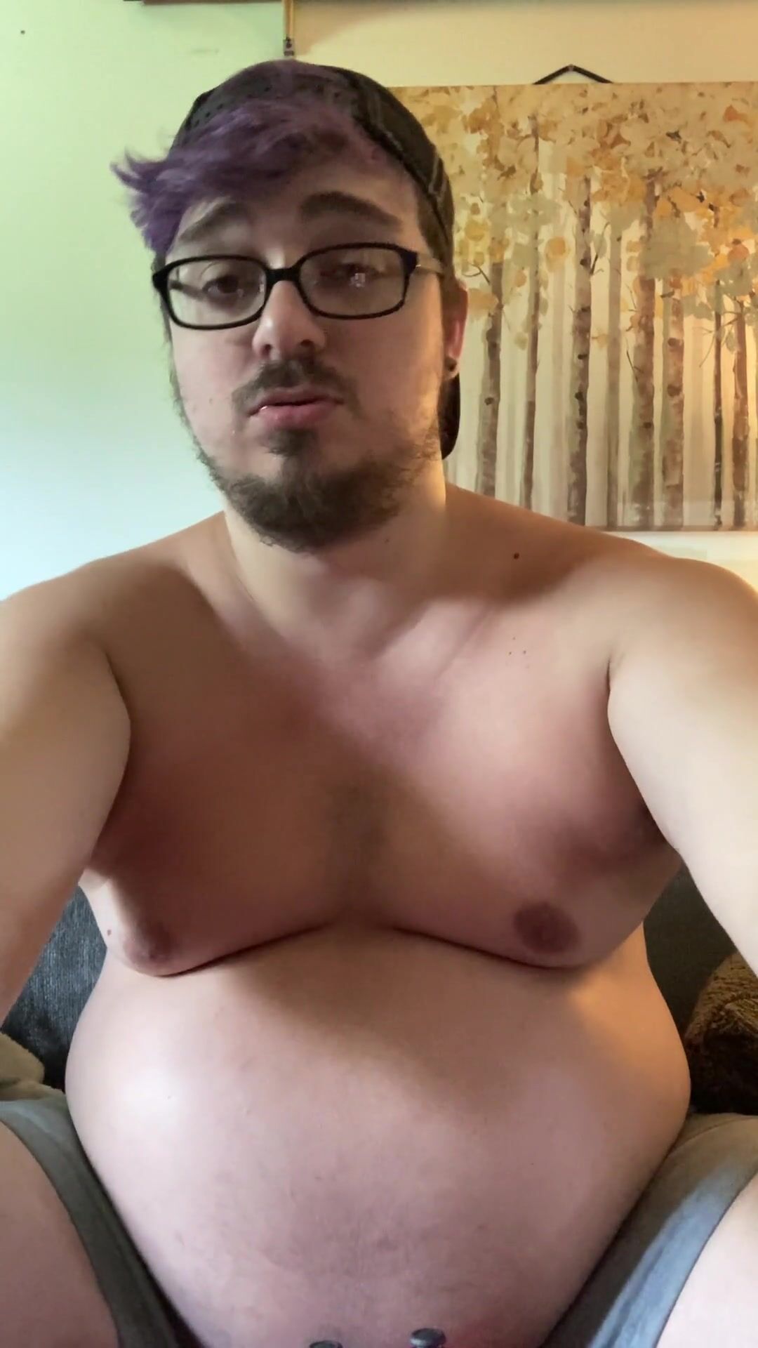 Stoner gamer bloats his meaty stomach