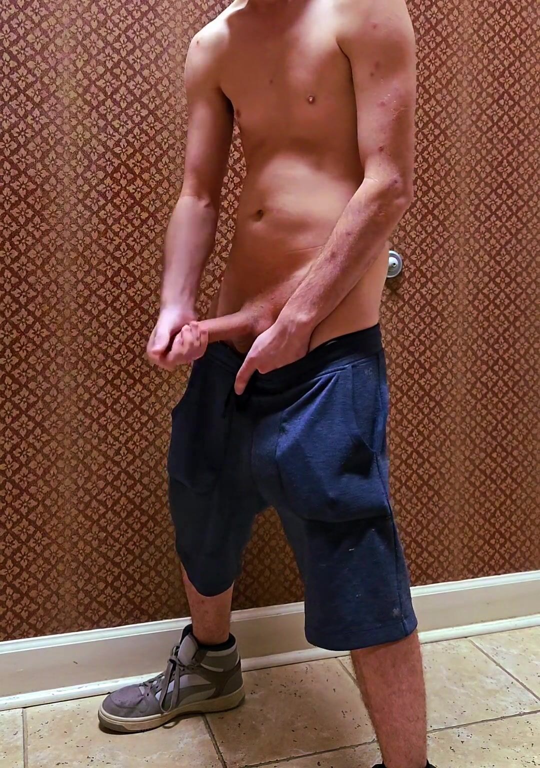 Youngster jerkin in the leasing office toilet