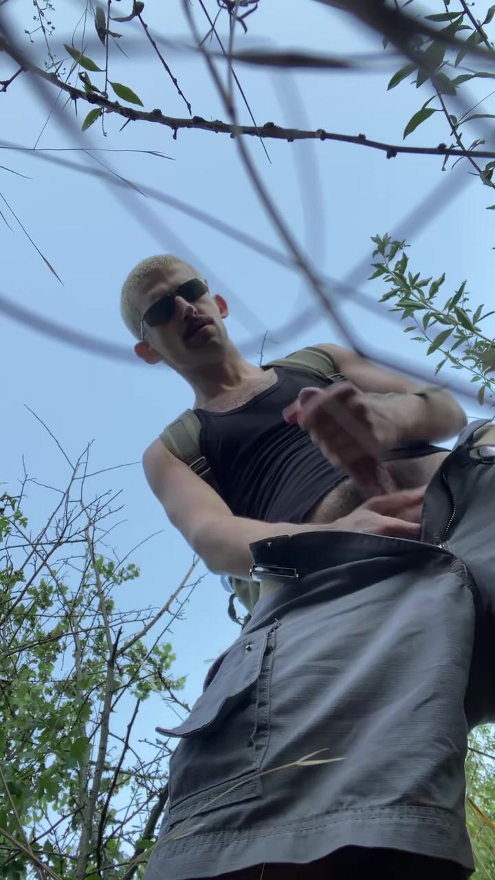 Ukrainian queer extraordinary tugging off on hills near Dark-hued River