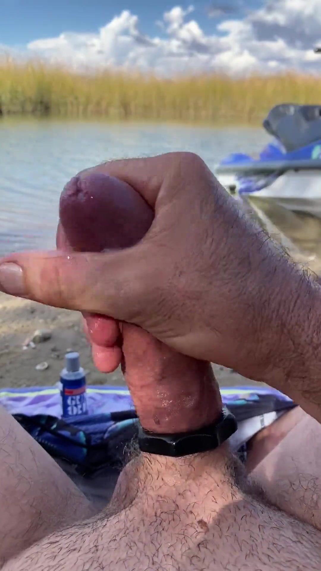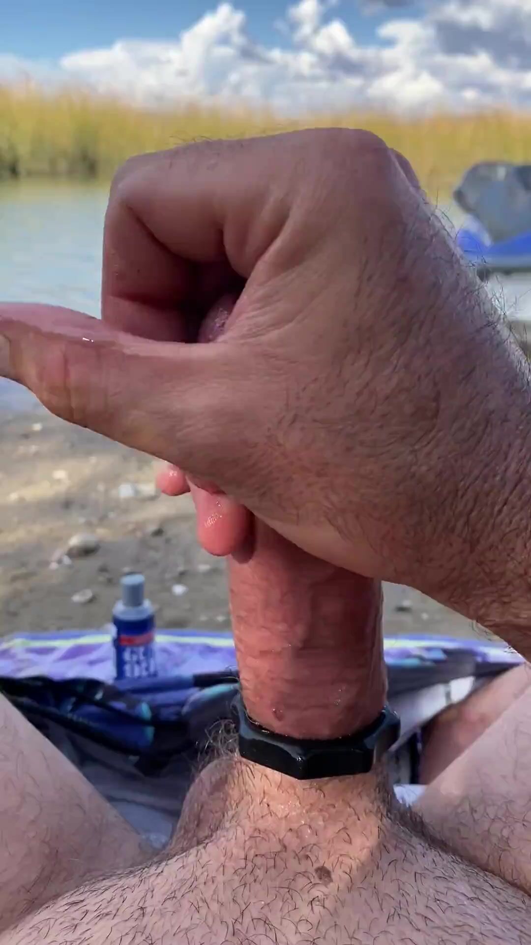 Jiggling money-shot while fapping on beach by water