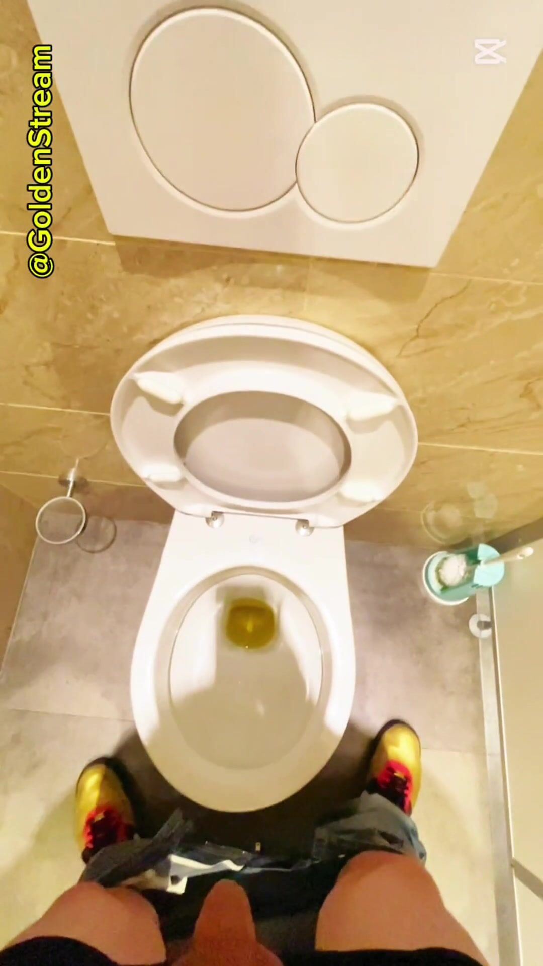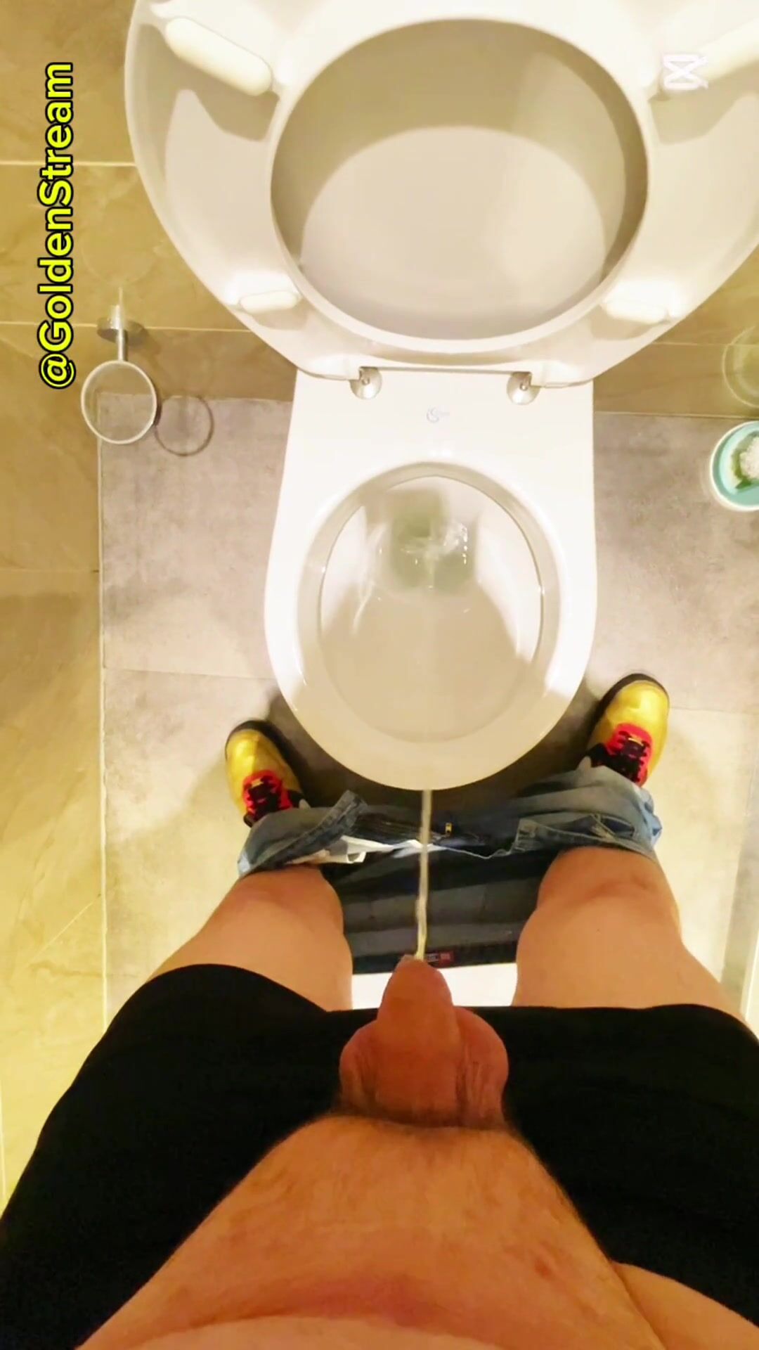 He pees sans flushing! And heads