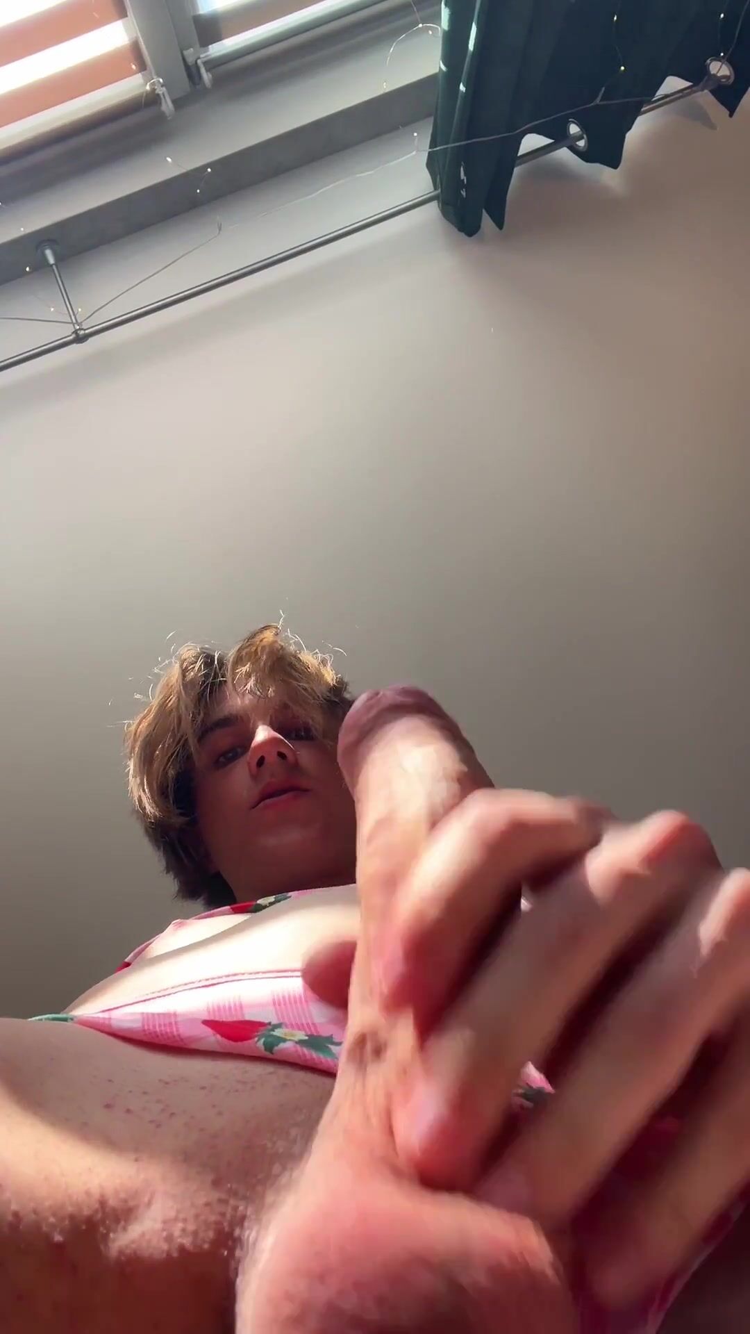 Nice Splendid Femboy In Super-fucking-hot Strawberry Nightwear Jerking Manhood and Toying with Crevasse