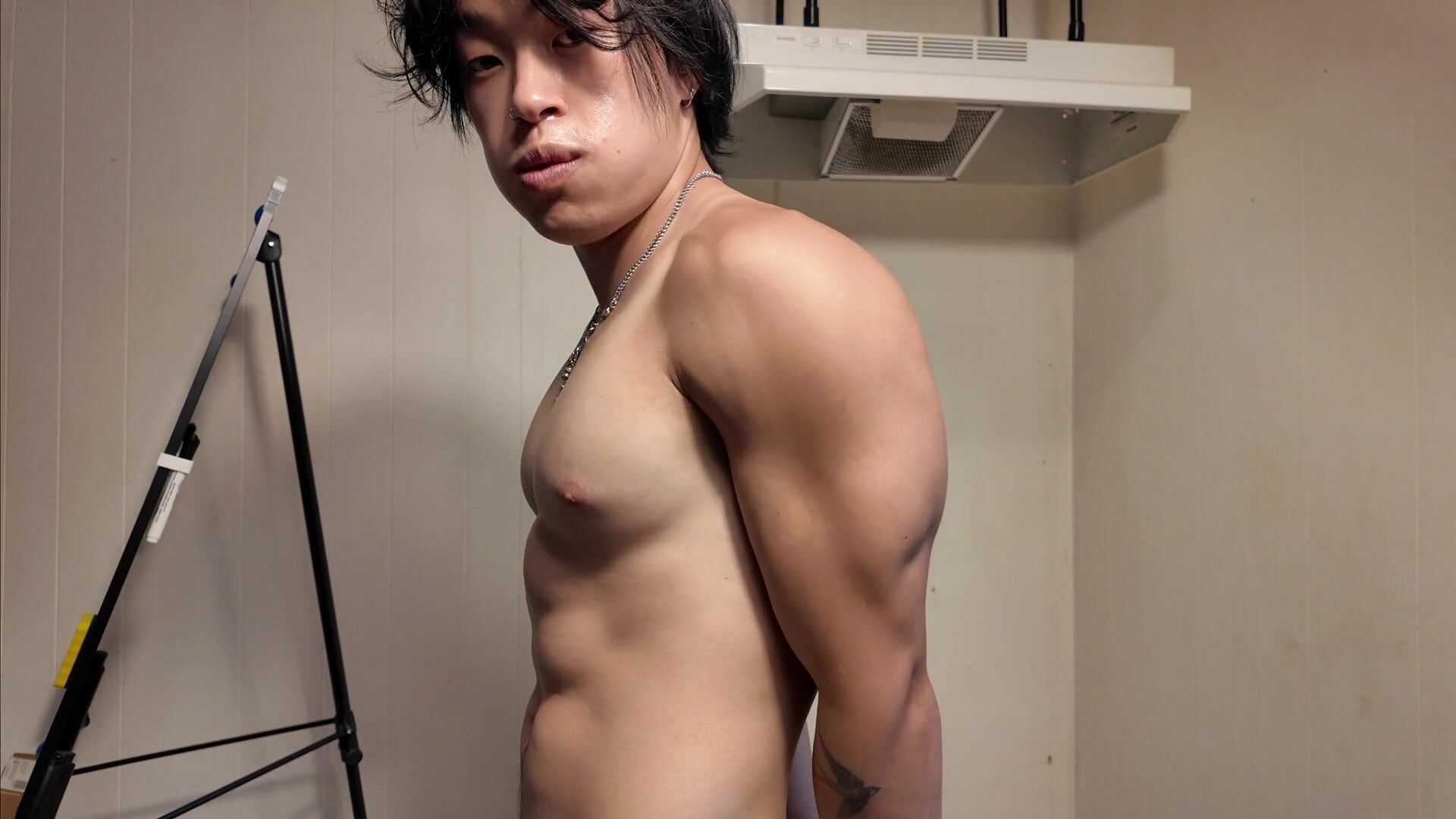 Torn Japanese Man Flexing While Displaying His Goods